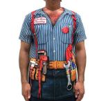 おもしろ変装Tシャツ フォーリアルTシャツ(マリオブラザースでおなじみの配管工) ■ アメリカ雑貨 アメリカン雑貨 インスタ映え コスプレ メンズ